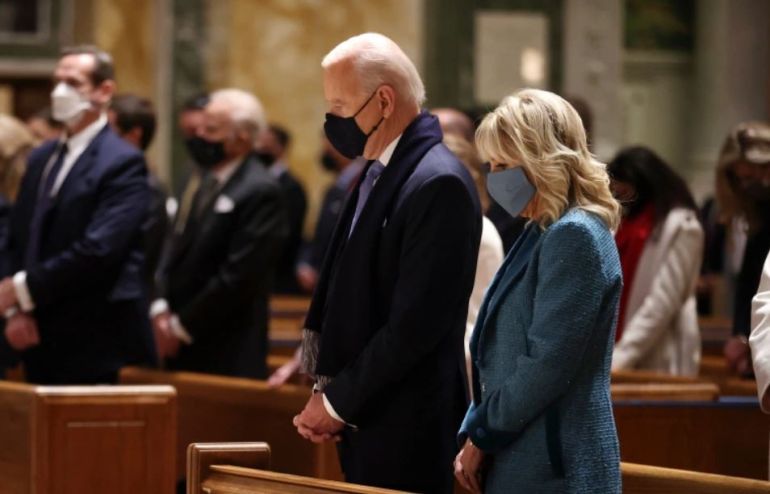 Dok su se Trump i Melania i drugi članovi porodice Trump ukrcavali u predsjednički avion Air Force One prema Floridi, Bidenova povorka krenula je u katedralu sv. Mateja u Washingtonu na misu kojoj prisustvuju i brojni republikanski prvaci koji su otklonili Trumpov poziv da ga isprate u vojnoj bazi.